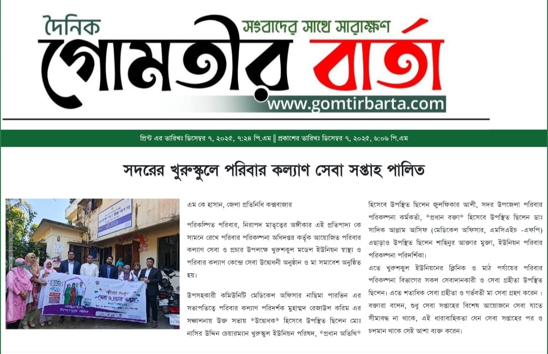 | ১ | পরিবার কল্যাণ সেবা ও প্রচার সপ্তাহ (০৬-১১ডিসেম্বর/২০২৫)এর উদ্ভোধন | | | ০৬-১২-২০২৫ | দেখুন |